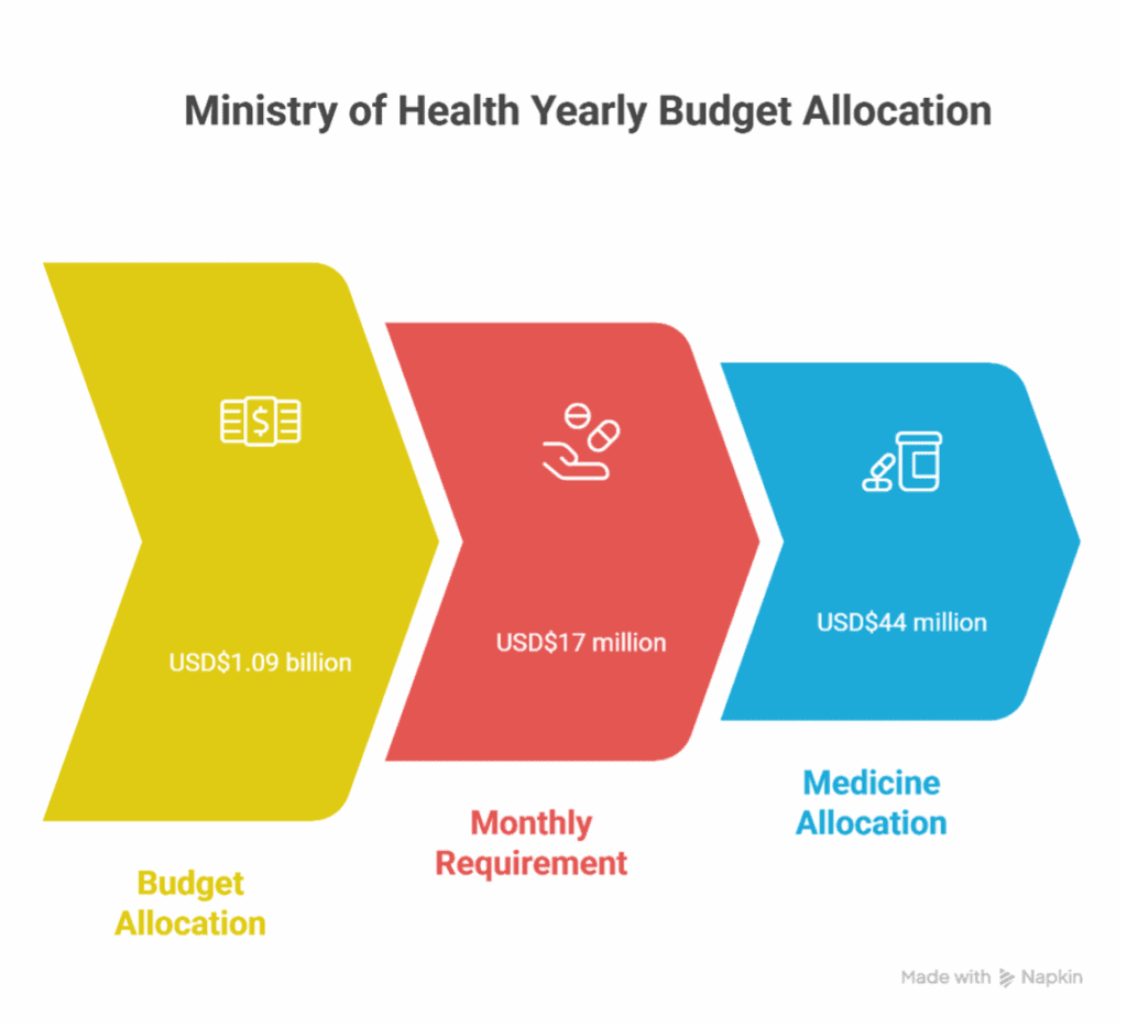 Only US$ $44 million was allocated for medicines for the entire year.