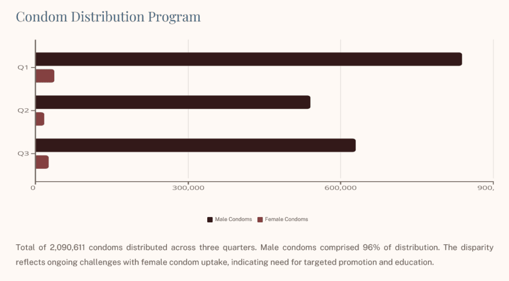 Male condoms accounted for 96 percent of distribution, while female condoms made up just four percent.