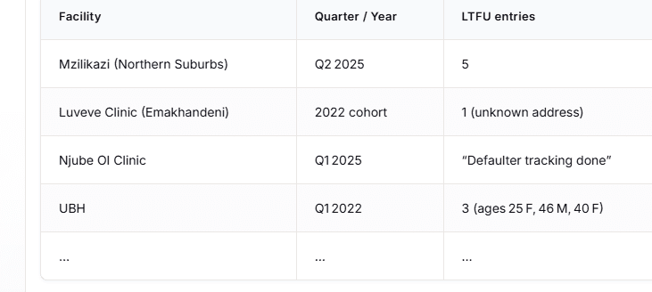The data reviewed by CITE shows a persistent pattern across Bulawayo’s three administrative districts – Emakhandeni, Nkulumane and the Northern Suburbs, where clinic registers show loss to follow-up.