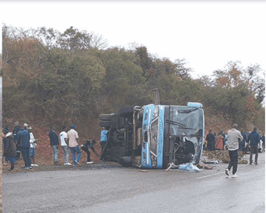 The school bus overturned along the Bulawayo-Esigodini Road while carrying members of the school’s rugby team returning to the school from a rugby match in Harare.