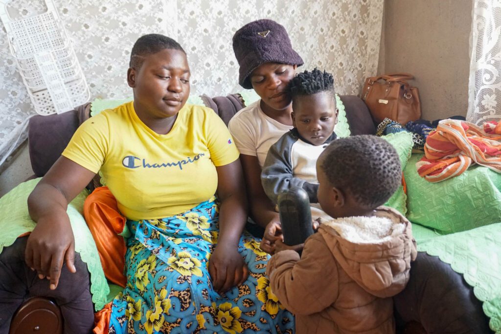 Emily Muchabaiwa, in hat, Antonette Chisango and Keldon Muchabaiwa sit at their home in Harare. The sudden death of Emily Muchabaiwa’s brother — Chisango’s husband — was marred by irregularities, including the absence of a written report and the lack of a clear explanation from medical staff.