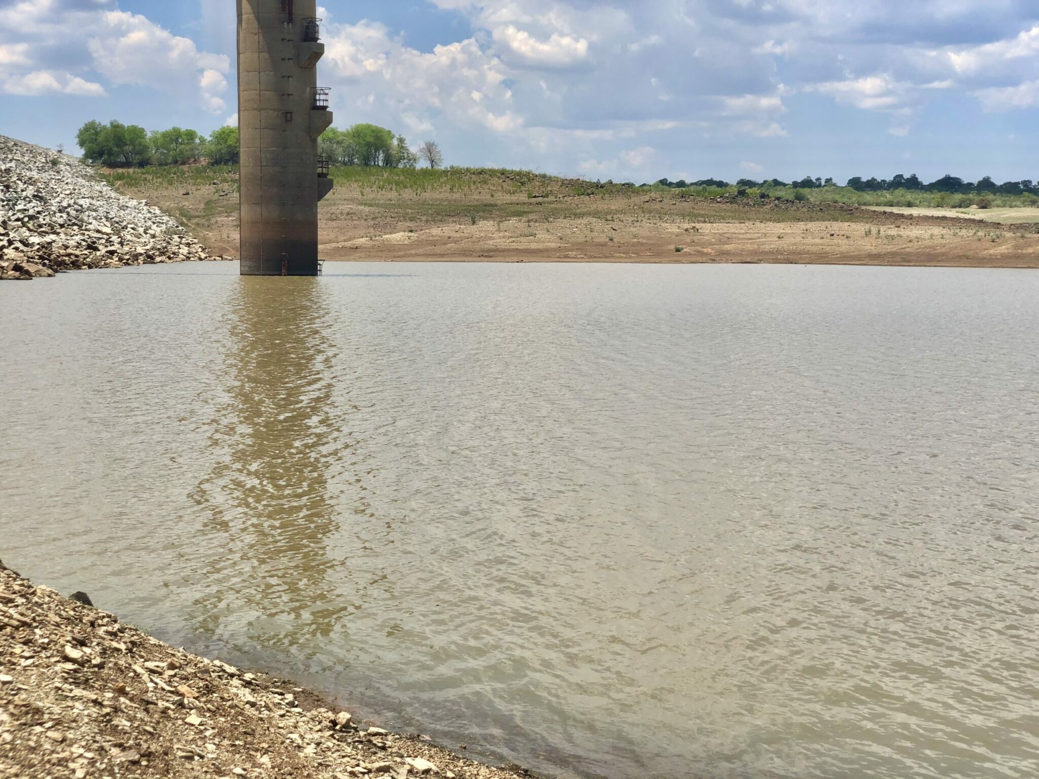 “What you see on the dam walls are the different levels where we take water from. So when water is full, the level will be at the top penstock. You can see we have a third penstock and a fourth one in that order. So when we say a dam has been decommissioned, it means the fourth penstock is now above water and the operational capacity of the dam is actually from that level of last penstock to the full supply level.”