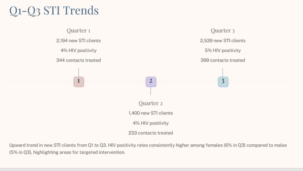 By the third quarter, new STI cases had surged again to 2 539, reinforcing concerns that Bulawayo was not making sustained progress.