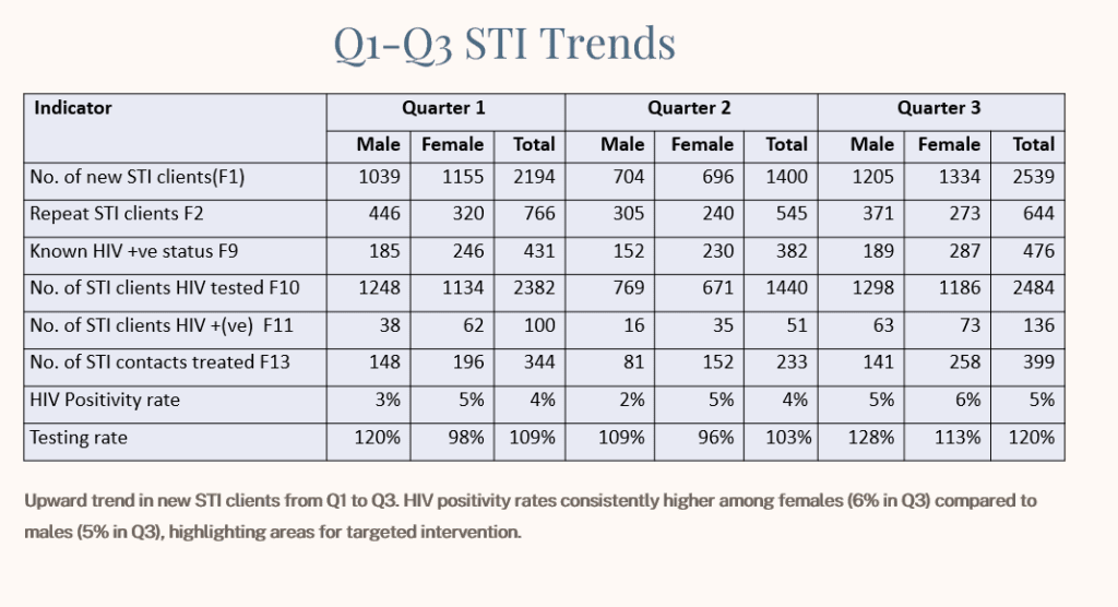 He said all STI patients are routinely tested for HIV, with the data revealing persistent HIV positivity among those presenting with STIs.