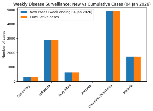 Zimbabwe recorded a surge in water-borne and sanitation-related diseases in the week ending 4 January 2026, with common diarrhoea and dysentery accounting for a large proportion of reported infections, according to the Ministry of Health and Child Care’s latest Weekly Disease Surveillance Report.