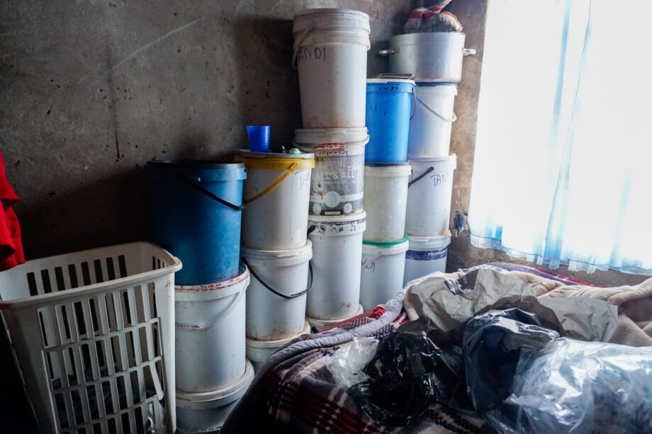 Junior Buta fetches water at her home and stores it in bowls and buckets to cope with the city’s unpredictable supply, which remains unsafe even after city purification. She spends about 20% of her income on water — often available only once every few days.
