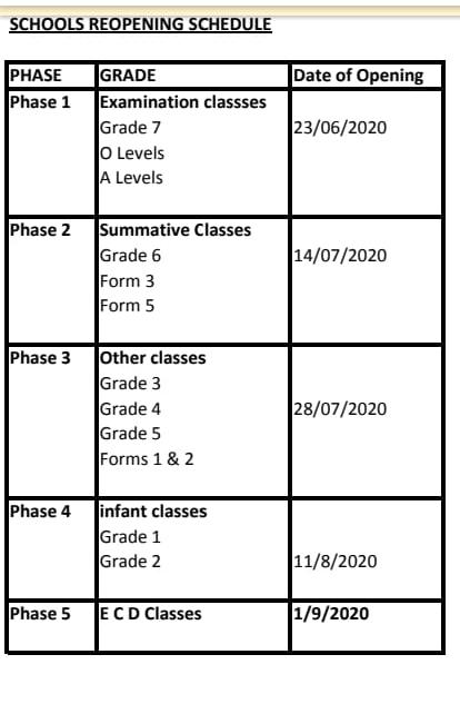 CITE spoke to the the Ministry of Primary and Secondary Education’s public relations officer, Patrick Zumbo, who refuted the news and said schools reopening dates have not been confirmed yet.