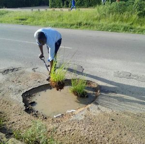 “This is one of the many ways to draw attention on the dangers of potholes across the city, just like someone deciding to sit on the road or bathing using the pothole water,” said Ndlovu.